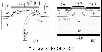 【答】①對于常規(guī)的MOSFET:如圖3(a)所示,源區(qū)、漏區(qū)和p襯底即構成了一個npn寄生晶體管。當溝道中的電場較強時,在夾斷區(qū)附近的電子即將獲得很大的能量而成為熱電子,然后這些熱電子通過與價電子的碰撞、電離,就會形成一股流向襯底的空穴電流Ib;該過襯底電流就是寄生晶體管的基極電流,在熱電子效應較嚴重、襯底電流較大時,即可使寄生晶體管導通,從而破壞了MOSFET的性能。這種熱電子效應的不良影響往往是較短溝道MOSFET的一種重要失效機理。容-源-電-子-網(wǎng)-為你提供技術支持