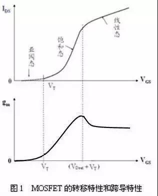而當柵-源電壓進一步增大,使得VDS<(VGS-VT)時,則MOSFET又將轉變?yōu)闇系牢磰A斷的線性工作狀態(tài),于是源-漏電流隨柵-源電壓而線性地增大。這時,跨導不再變化(與柵電壓無關)。