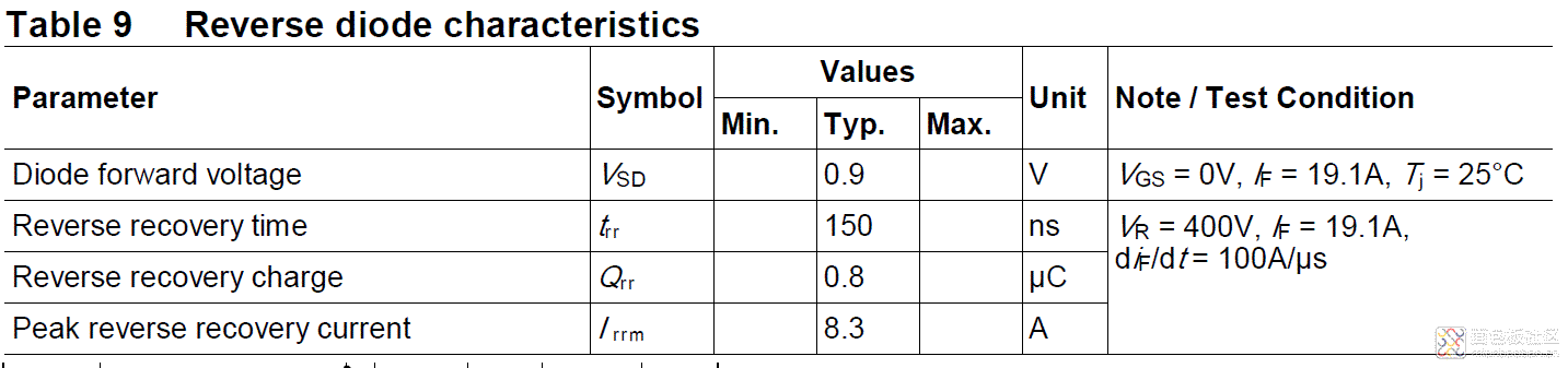 高速下,二極管也不是理想的,二極管導(dǎo)通后,PN節(jié)中充滿了電子和空穴,當(dāng)瞬間反向加電的時(shí)候,需要時(shí)間恢復(fù)截止,這個(gè)類似一扇門(mén)打開(kāi)了,需要時(shí)間關(guān)上,但在高速下,這個(gè)關(guān)上的時(shí)間太長(zhǎng),就會(huì)導(dǎo)致H橋上下管子導(dǎo)通而燒壞。所以在高速應(yīng)用中,直接因?yàn)镸OS管工藝寄生的二極管的反向恢復(fù)時(shí)間太長(zhǎng),所以需要用特殊的工藝制作實(shí)現(xiàn)高速的內(nèi)置二極管,但哪怕特殊工藝制作的,其性能也達(dá)不到獨(dú)立的高速二極管性能,只是比原MOS管寄生的指標(biāo)強(qiáng)一些而已,但已經(jīng)滿足大部分軟開(kāi)關(guān)的需求了,500KHz下沒(méi)問(wèn)題。比如Infineon的C6系列,后綴帶CFD的管子,內(nèi)部的二極管就是高速的。