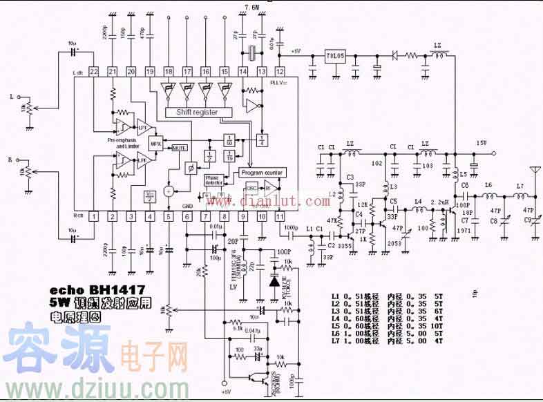 如圖所示電路是立體聲調頻無線麥克風,我們測試它超過50米,它的音響,提供出乎意料的好音質。 :