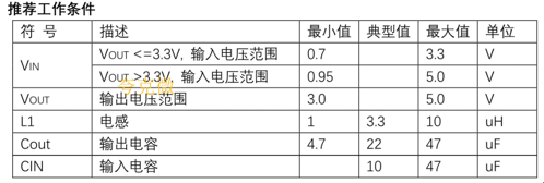 但是輸出端如果需要輸出大電流負載(例如:輸出電流大于 200mA),為了提高工作效率,建議使用較大一點的電感。