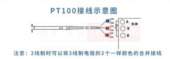 A線接在儀表上接傳感器的一個固定的端子.B和C接在儀表上的另外兩個固定端子,B和C線的位置可以互換,但都得接上,。如果中間接有加長線,三條導(dǎo)線的規(guī)格和長度要相同。熱電阻的3線和4線接法:是采用2線、3線、4線,主要由使(選)用的二次儀表來決定。一般顯示儀表提供三線接法,PT100一端出一顆線,另一端出兩顆線,都接儀表,儀表內(nèi)部通過橋抵消導(dǎo)線電阻。一般PLC為四線,每端出兩顆線,兩顆接PLC輸出恒流源,PLC通過另兩顆測量PT100上的電壓,也是為了抵消導(dǎo)線電阻,四線精確度最高,三線也可以,兩線最低,具體用法要考慮精度要求和成本。