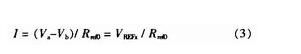 設(shè)圖2中參考電阻Rref上下兩端的電位分別Va和Vb,Va即為同相加法器UA1的輸出,當(dāng)取電阻R1=R2,R3=R4時(shí),則Va=VREFx+Vb,故恒流源的輸出電流就為: