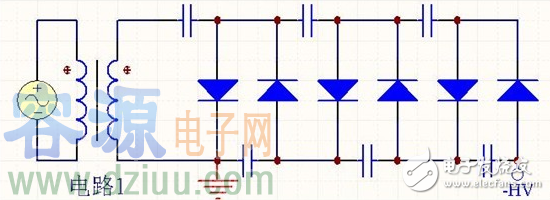 用于倍壓整流電路的二極管,其最高反向電壓應大于 。可用高壓硅整流堆,其系列型號為2DL。如2DL2/0.2,表示最高反向電壓為2千伏,整流電流平均值為200毫安。倍壓整流電路使用的電容器容量比較小,不用電解電容器。電容器的耐壓值要大于1.5x ,在使用上才安全可靠。