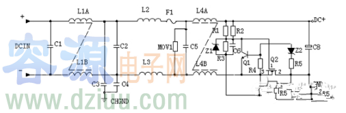 輸入濾波電路:C1、L1、C2、C3組成的雙π型濾波網絡主要是對輸入電源的電磁噪聲及雜波信號進行抑制,防止對電源干擾,同時也防止電源本身產生的高頻雜波對電網干擾。當電源開啟瞬間,要對C5充電,由于瞬間電流大,加RT1(熱敏電阻)就能有效的防止浪涌電流。因瞬時能量全消耗在RT1電阻上,一定時間后溫度升高后RT1阻值減小(RT1是負溫系數元件),容源電子網www.zskn.com.cn這時它消耗的能量非常小,后級電路可正常工作。容-源-電-子-網-為你提供技術支持