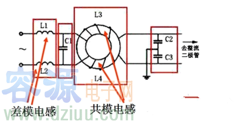 當50Hz電流流經共模電感時,由于進線與出線產生的磁場方向相反,相互抵消,不會產生壓降,但共模電感對共模干擾卻有較大的感抗。