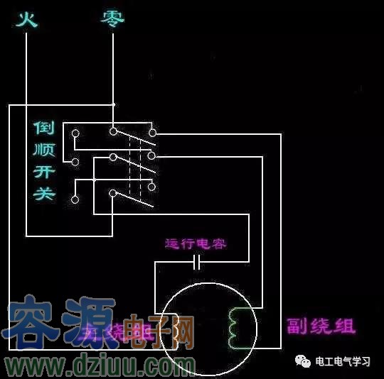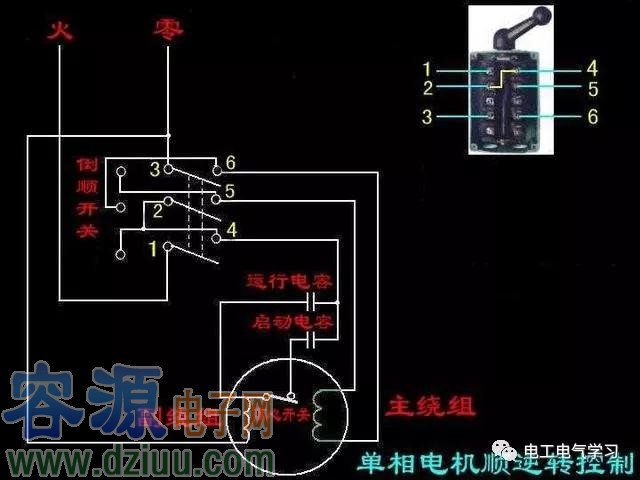 4,單相電機正反轉(zhuǎn)(一個電容)。