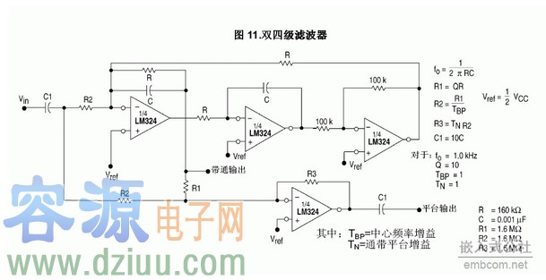 LM324+LM386具有可調諧濾波器的音頻放大器