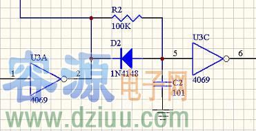 在前級邏輯電路里,有意地對控制PMOS的下降沿和控制NMOS的上升沿進行延時,再整形成方波,也可以避免場效應管的共態導通。另外,這樣做可以使后級的柵極驅動電路簡化,可以是低阻推挽驅動柵極,不必考慮柵極電容,可以較好的適應不同的場效應管。2003年Robocon比賽采用的就是這種驅動電路。下圖是兩種邊沿的延時電路: