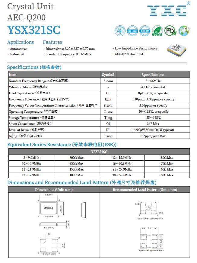 穩定性與高性能的晶體諧振器YSX321SL無源晶振,清晰的