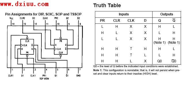 MM74HCT74M內部電路圖及真值表: