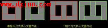 鐵心交疊:相鄰層按不同方式交錯(cuò)疊放,將接縫錯(cuò)開。偶數(shù)層剛好壓著奇數(shù)層的接縫,從而減少了磁阻,便于磁通流通。
