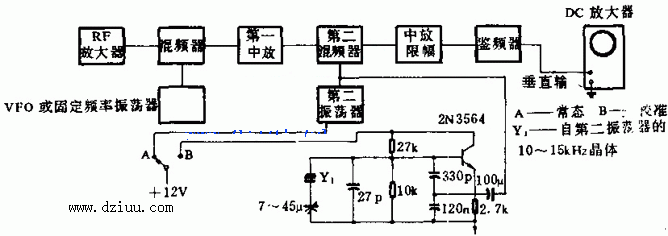 本電路使用與固定或可調FM接收機聯用的簡單晶體管振蕩器及顯示載頻偏離中心頻率任一側的示波器。示波器的垂直放大器采用直接耦合。