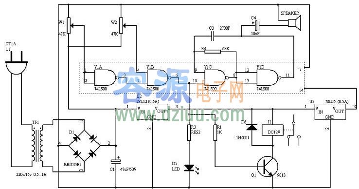 電路圖如下: <<版權聲明:本文由容源電子網(www_dziuu_com)整理提供,部分內容來源于網絡,如有侵犯到你的權利請與我們聯系更正。》