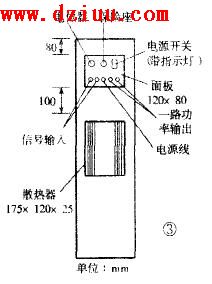 組裝時先固定變壓器,然后將面板和散熱器從后箱板外側與后箱板固定,并且在接觸處均墊上一層2mm厚的軟橡膠墊,保證密封。散熱器的散熱齒向外,便于散熱。 <<版權聲明:本文由容源電子網(www_dziuu_com)整理提供,部分內容來源于網絡,如有侵犯到你的權利請與我們聯系更正。》