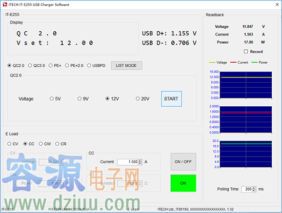 操作清晰簡易,可以顯示拉載的電壓、電流、功率的波形曲線,自由控制電子負載,另外還可以設置list自動測試,快速進行判斷、OCP測試等。此外還可以下載到快充控制盒中,與電腦脫機使用,一鍵操作,非常快捷。