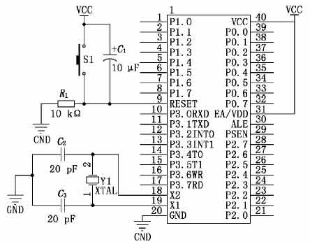 SRAM等;③具有4個八位并行I/O口,3個定時/計數器,2個外部中斷源和1個全雙工UART傳輸口;④5V供電時,最高支持80MHz振蕩頻率,具備高速浮點運算能力,適合倒立擺系統等較為復雜的控制系統使用。51單片機最小系統如圖3所示。