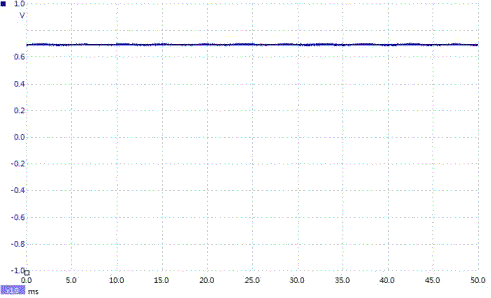 在本例的積分電路中,RC=10ms,只有兩倍的信號周期,但是通過測試,信號效果還是比較理想的。如果將更多的積分電路串聯,效果會更好。