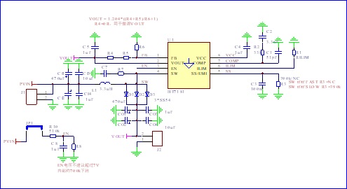 但是輸出端如果需要輸出大電流負載(例如:輸出電流大于 200mA),為了提高工作效率,建議使用較大一點的電感。