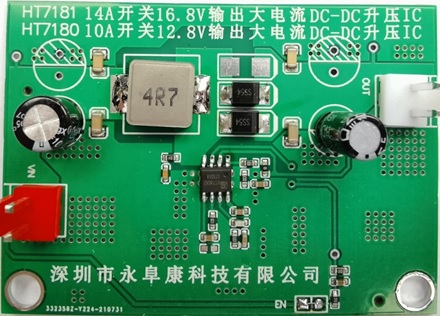 雙節鋰電池7.4V應用升壓到16V/4.38A/70W。