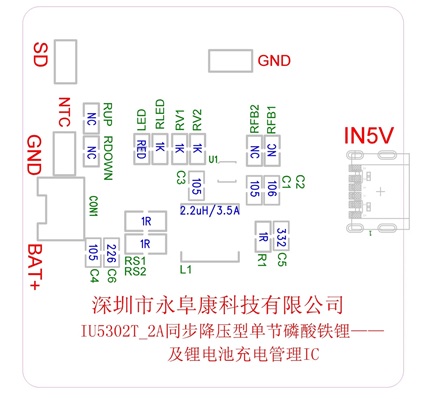 IU5302TC有完善的保護功能,包括輸入欠壓/過壓保護、電池過壓和短路保護、電池溫度保護NTC功能、芯片溫度保護,充電超時保護。此外芯片通過外接的LED指示燈對充電過程實現全程監控。采用 DFN2X2_10L封裝。