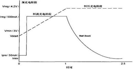 在電池電量用盡后,怎樣鋰電池進行充電呢?市面上有很多充電管理IC可以協助我們完成整個充電過程。電池的充電過程,大致劃分為四個階段,即1涓流充電;2恒流充電;3恒壓充電;4停止充電。以最常見充電芯片4054為例,標準的鋰電池(滿電4.2V)充電過程如下圖所示: