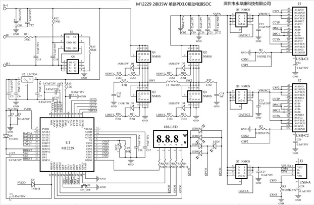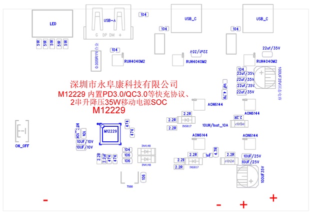 深圳市永阜康科技有限公司現在大力推廣一顆內置PD3.0/QC3.0等主流快充協議、3-6多節鋰電池移動電源雙向100W快充IC-M12266,配合極簡的外圍電路,即可實現常見便攜電子設備的Type-C快充需求。