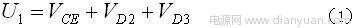 ,通過檢測IGBT的通態飽和壓降(即1腳的電壓U1)來判斷是否過流,當檢測出IGBT的柵極和源極同為高電平時就判斷為過流,此時降低柵極驅動電壓。并通過光耦向控制電路發出故障信號。IGBT正常工作時的通態壓降一般為2.5V~3.0V。而M57962AL的過流檢測端的閥值電壓Ucs設計為10V。如此高的閥值電壓對諸如橋臂直通、負載短路等情況有一定的保護作用。但動作非常遲緩,甚至起不到保護作用。因此必須降低過流保護閥值,方法是在檢測端串聯一穩壓管D2,通過實驗來確定穩壓管的穩壓值。它們之間滿足如下關系:
