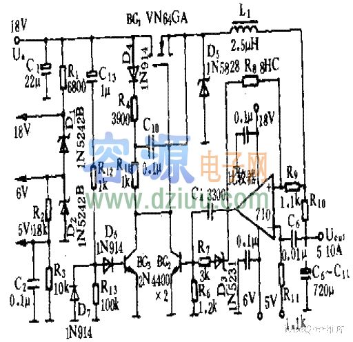 5V-10V-10A的VMOS開關電源電路 <<版權聲明:本文由容源電子網(www_dziuu_com)整理提供,部分內容來源于網絡,如有侵犯到你的權利請與我們聯系更正!