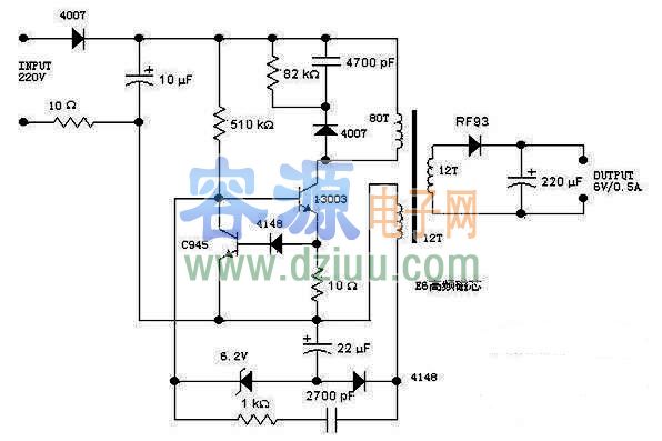 手機,MP3開關電源充電器及電路圖《版權聲明:本文由容源電子網(www_dziuu_com)整理提供,部分內容來源于網絡,如有侵犯到你的權利請與我們聯系更正。》