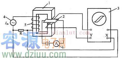 研究閉合試樣在交流電流下的磁特性可以采用圖所示的線路來進行。因為霍爾電壓同鐵心磁化繞組的電流的關系VH=f(Im),同樣反映了磁感應強度B與磁場強度H之間的關系B=f(H),所以可以直