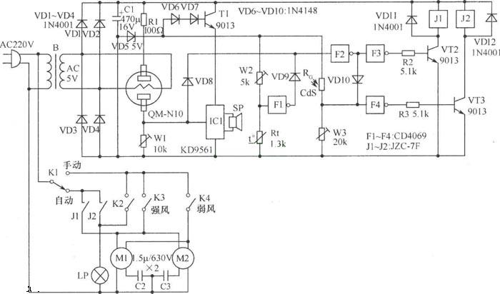 抽油煙機自動控制電路圖: