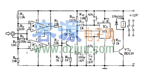 本電路可以根據音頻信號的用無來自動關閉音像設備,當然不能自動開機,可以在自己家里使用,也可以在其他場合使用,電路可靠,制作方便,元器件又少,元器件參數請見電路圖, <<版權聲明:本文由容源電子網(www_dziuu_com)整理提供,部分內容來源于網絡,如有侵犯到你的權利請與我們聯系更正。》