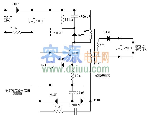 分析手機充電器電路原理圖 <<版權聲明:本文由容源電子網(www_dziuu_com)整理提供,部分內容來源于網絡,如有侵犯到你的權利請與我們聯系更正。》