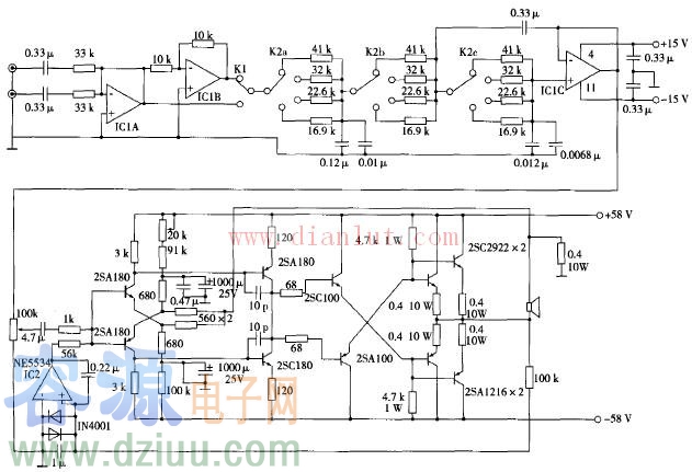 重低音音箱用的主動(dòng)伺服式功率放大器電路圖