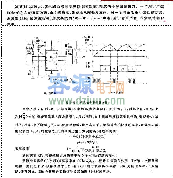556組成聲光信號節拍器電路《版權聲明:本文由容源電子網(www_dziuu_com)整理提供,部分內容來源于網絡,如有侵犯到你的權利請與我們聯系更正。》