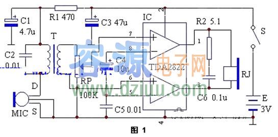 簡易助聽器電路圖(TDA2822)
