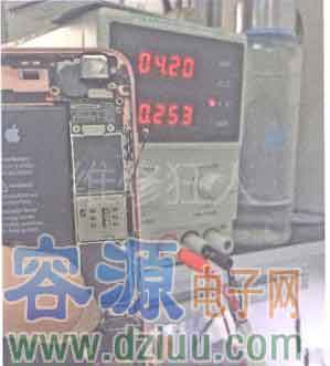 接可調電源測試,發現不漏電了。按下開機鍵開機,電流恢復正常,如圖所示iPhone6S手機進水后耗電快的修理方法