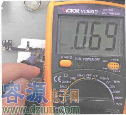 拆掉腐蝕的電容,再次測量發現其二極體值恢復正常,如圖所示。
