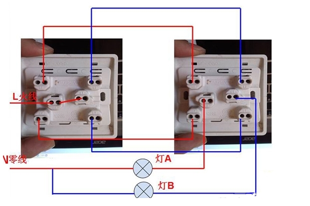 雙控開關接線圖(實物接線圖)