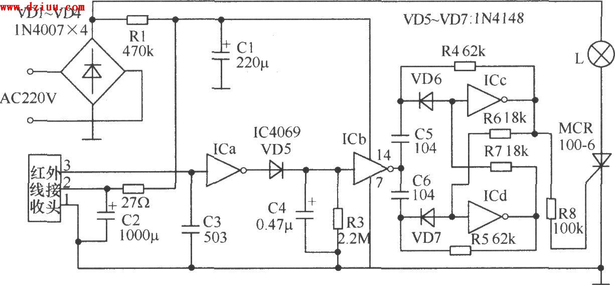 簡易家用電器紅外遙控接收電路