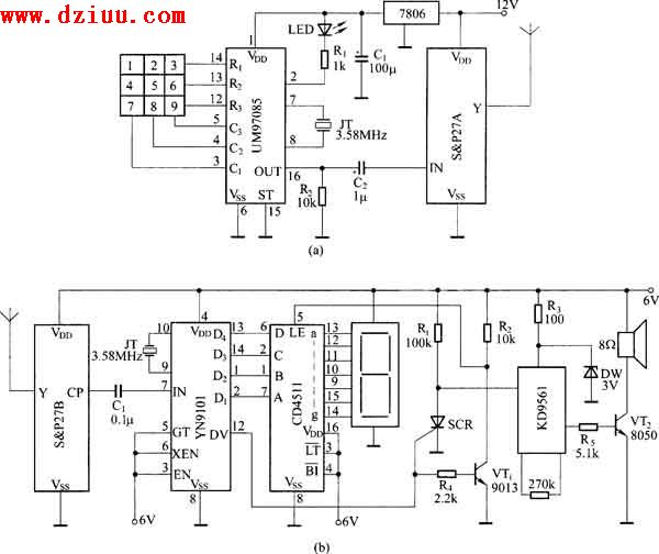 為DTMF編碼無線電發射電路,圖(b)