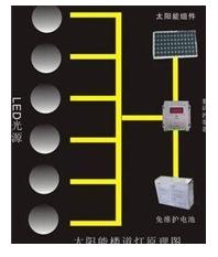 有一個安裝在建筑物樓頂的太陽能LED電池和安裝在各個樓層的照明燈,以及統一安放的蓄電池,充放電控制器。蓄電池與各樓層的照明燈通過導線連接。負載采用LED燈具,并配合聲光控開關工作。