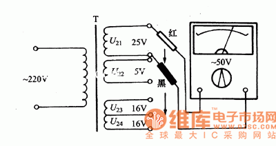 3)測試變壓器的二次繞阻空載電壓將變壓器一次繞組接人220V電源,將萬用表置于交流電壓擋,根據(jù)變壓器二次繞組的標(biāo)稱值,選好萬用表的量程,依次測出二次繞組的空載電壓,允許誤差