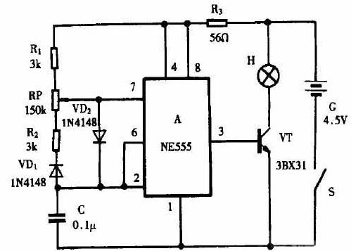 該電路應用NE555集成電路組成的調光電路,元器件少,方便制作,是手電筒調光IC的首先應用電路,4.5V供電,調光效果好,詳細元器件參數及制作請見下圖.