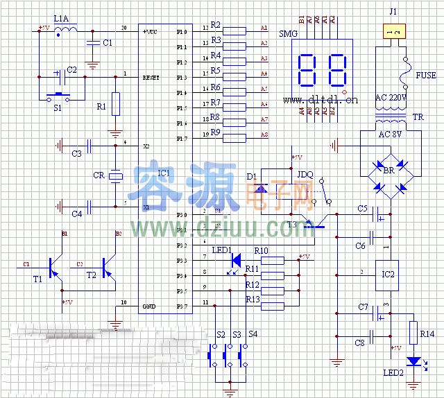 受到干擾死機(jī)時可以按一下S1進(jìn)行復(fù)位。《版權(quán)聲明:本文由容源電子網(wǎng)(www_dziuu_com)整理提供,部分內(nèi)容來源于網(wǎng)絡(luò),如有侵犯到你的權(quán)利請與我們聯(lián)系更正。》