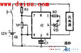頻率的脈沖振蕩信號,且(6)腳輥出低電平,使訊響器發出報警聲。 <<版權聲明:本文由容源電子網(www_dziuu_com)整理提供,部分內容來源于網絡,如有侵犯到你的權利請與我們聯系更正。》
