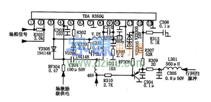 TDA8350Q是場掃描集成電路,下面介紹引腳功能及應用電路圖,對于維修的朋友很有幫助。    <<容源電子網論壇正式上線,為朋友們建立一個友好互動交流平臺,歡迎大家去論壇和朋友們一起分享、學習電子技術。對本文有什么疑問請直接到論壇相應欄目發貼求助。