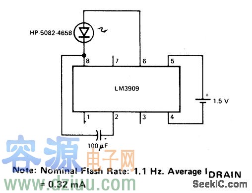 LM3909最低功率閃光電路(1.5V)