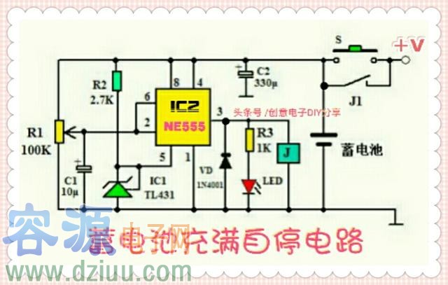 電子電路DIY——用NE555芯片制作的蓄電池充滿自停電路